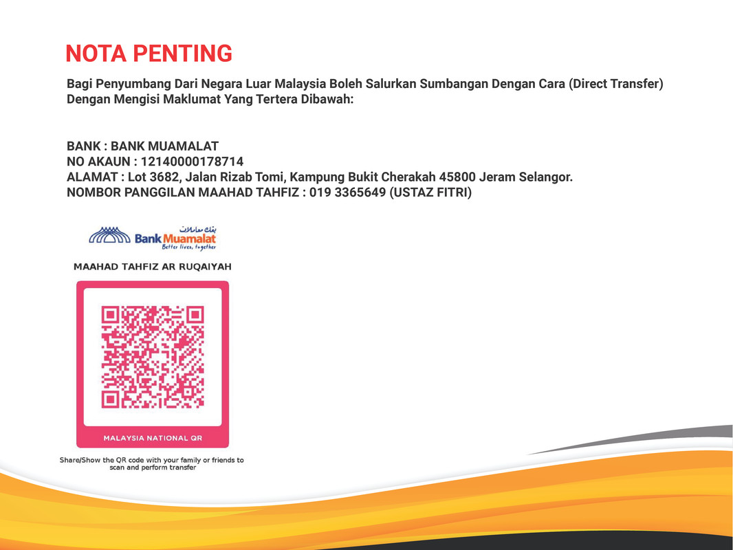 2. Sumbangan termasuk RM1.00 caj servis bagi payment gateway Toyyibpay.